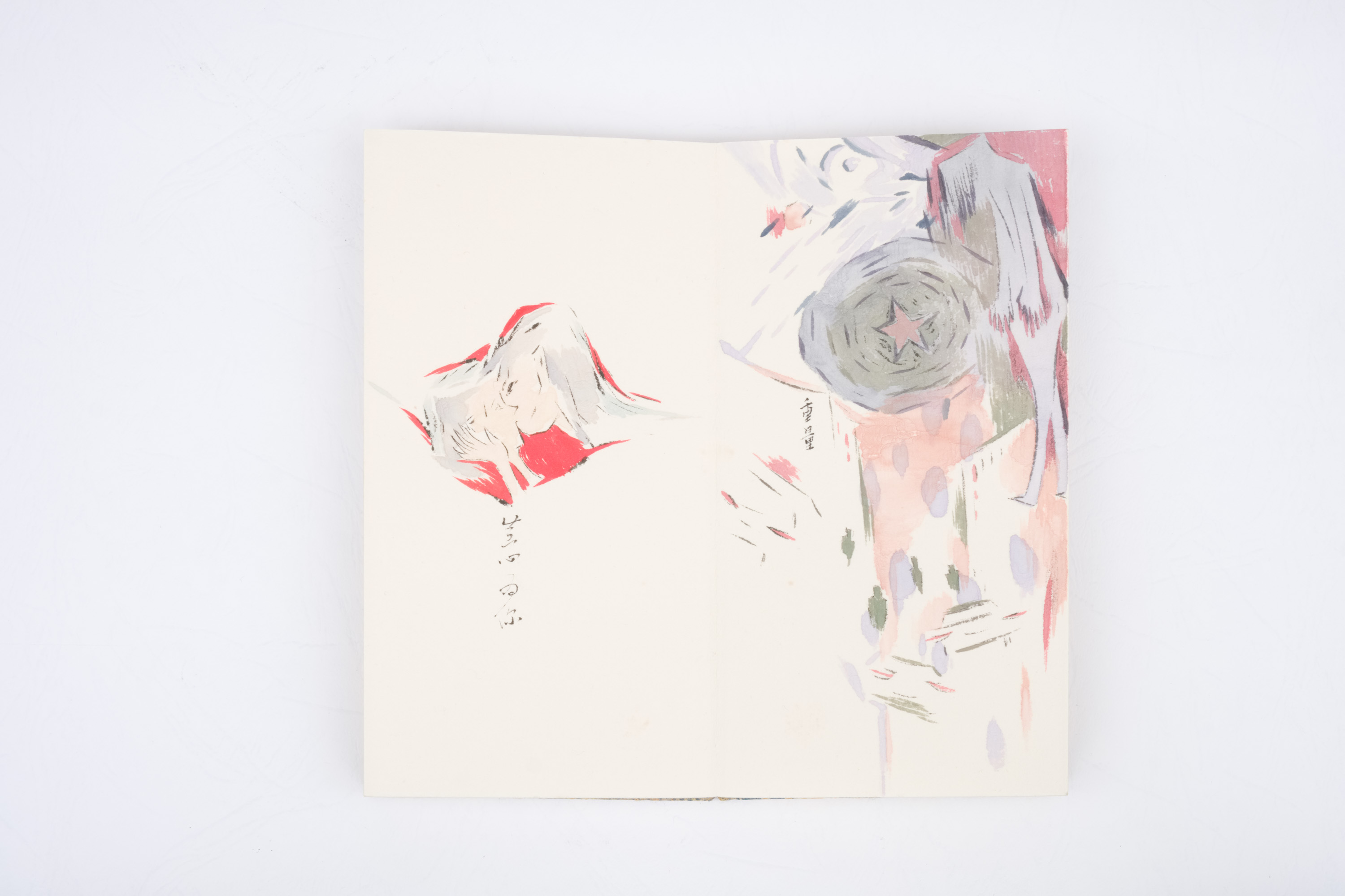 在「愛的歷史」這件作品中,我以「私小說式」的第一人稱敘事邏輯,並以繪畫形式描繪和書寫於水墨冊頁上,試圖展示個人生命脈絡中 :「愛」如何以不同形式連繫著我與外在世界的關係。當中包含親子難以割捨的情感、陌生人拔刀相助的溫情、自我試圖反饋他人努力的過程等等……,一共二十二篇章。這些由個人經驗所串連起的敘事:一部由青澀邁向自我完滿的見證歷史。觀者透過閱讀作品,反向細審與挖掘自身生命史脈絡中,「愛於何處發生?」與「愛如何發生?」的私密經驗,進而爬梳與釐清,最終產生內在感性式的自我對話。