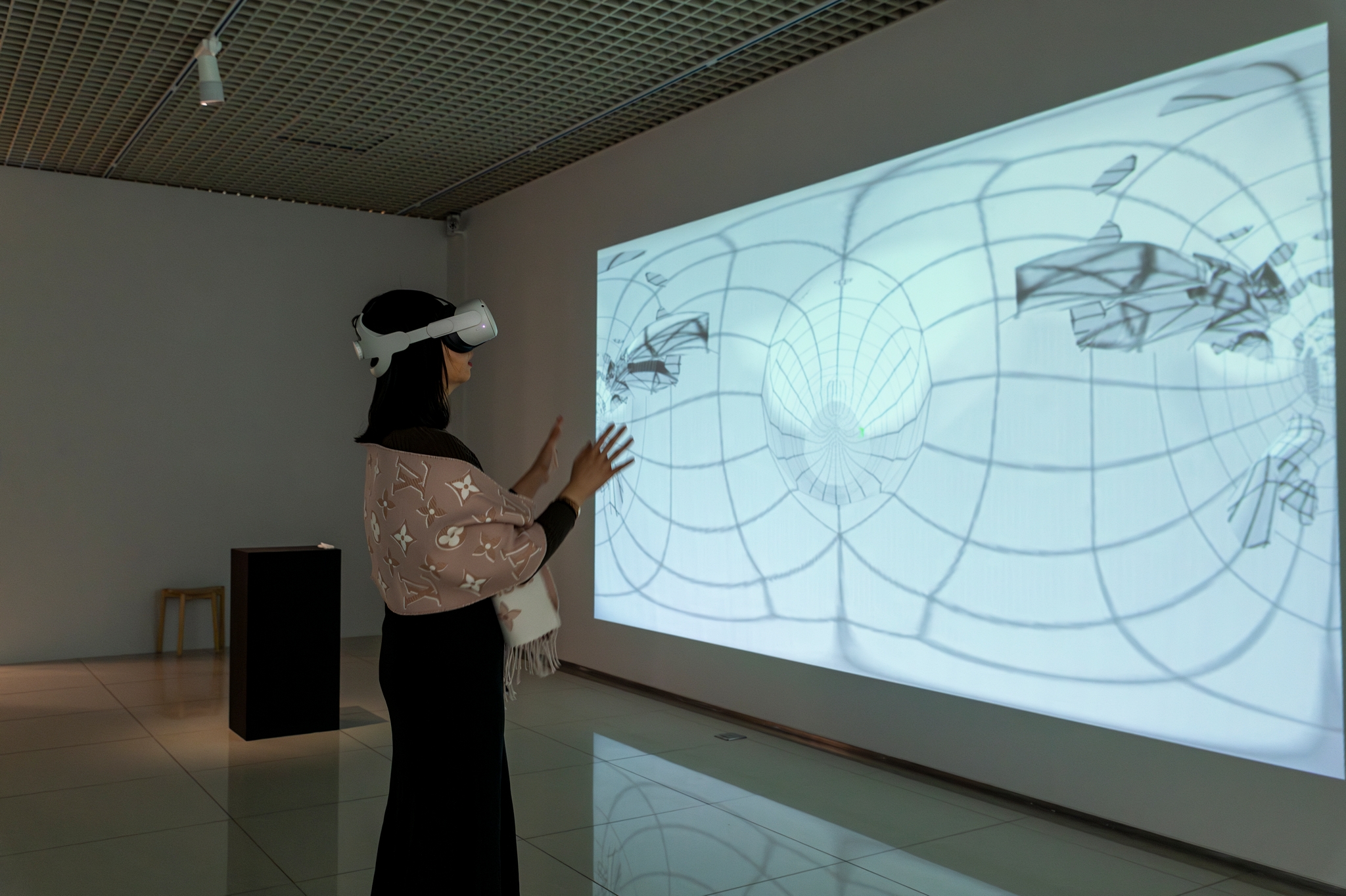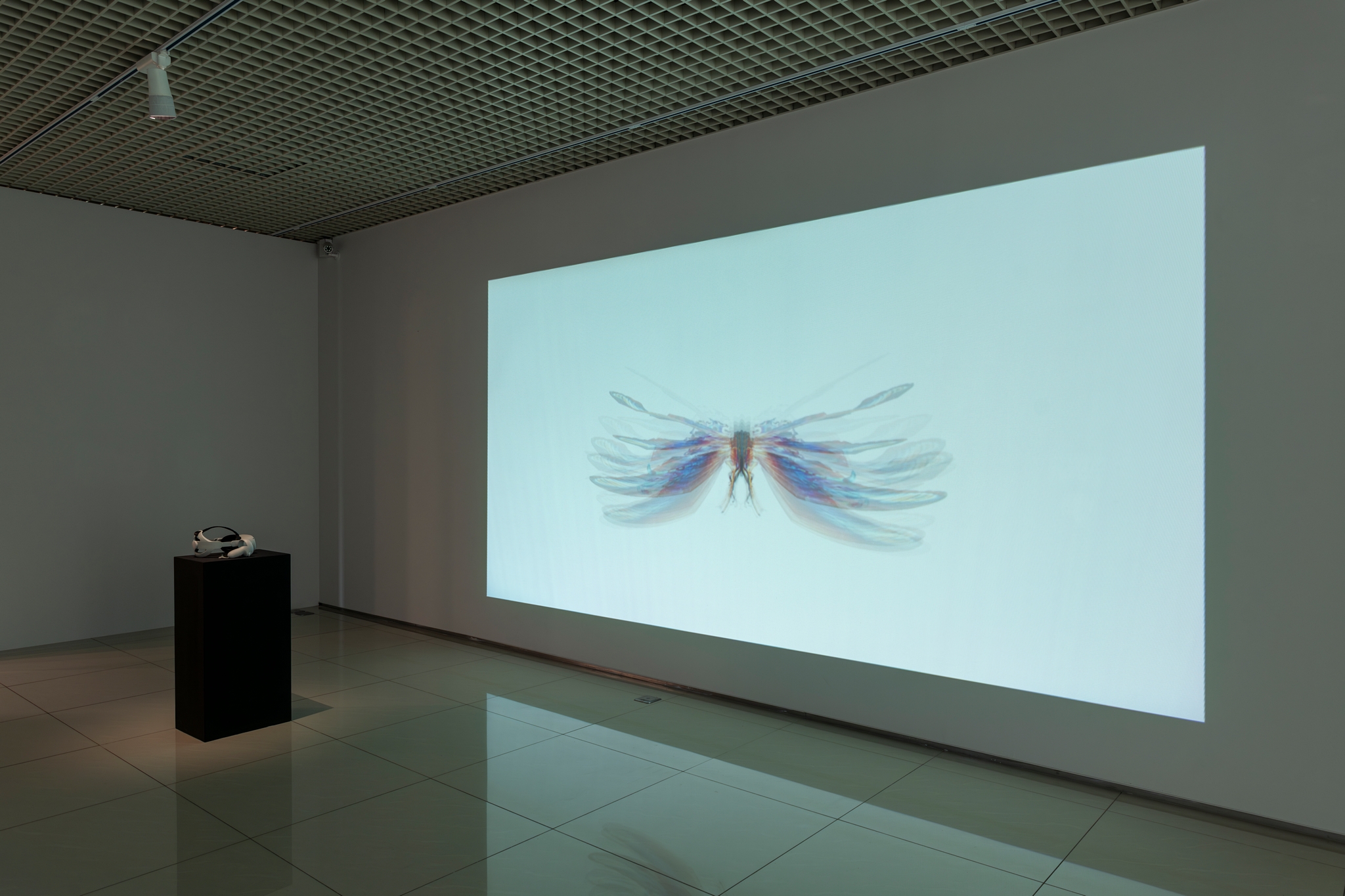 《蝴蝶夢:物化機器》透過虛擬實境裝置,建構特殊的觀察系統。在作品中,試圖體現的並非是觀者的感知沈浸,亦非身體的在場。而是透過調度主體的觀看位置,使之不斷改變在場的情境。進而召喚主體在虛擬空間中的「物化」過程。觀者從作為虛擬物件外部的觀察者(observer)為始,通過不斷潛入客體內部,去觀看虛擬物件的內部結構。此時主體一方面處於觀看客體的外部情境;另一方面又以感知的在場,存在於客體內部。反向而言,作為客體的虛擬物件,不斷向觀察者敞開其物質性的內裏,在觀察者穿越之時,將其內部翻轉為外部,並成為觀察者得以存在的空間。在這樣的觀察系統中,主體/客體、觀察者/被觀察者、自我/蝴蝶成為彼此指向對方的在場條件,即「我同時在場蝴蝶的外/內部,蝴蝶亦同時在場我的外/內部。」在這樣的情境下,主體不再是以另一個主體的形式存在於虛擬空間,而是以變成、化為的質變狀態,朝向虛擬物件流動。隨著主體位置不斷進入客體內部,即穿越虛擬物件由外而內的物質性結構:貼圖(texture)、網格(polygon mesh)、骨架(armature)、座標(coordinate)。主體最終窮盡虛擬物件外部可見的物質性,潛入虛擬物件的最內裏。在這個空間中,虛擬物件的物質性被取消,主體通過觀看不可見的客體,進而指向虛擬的本質。