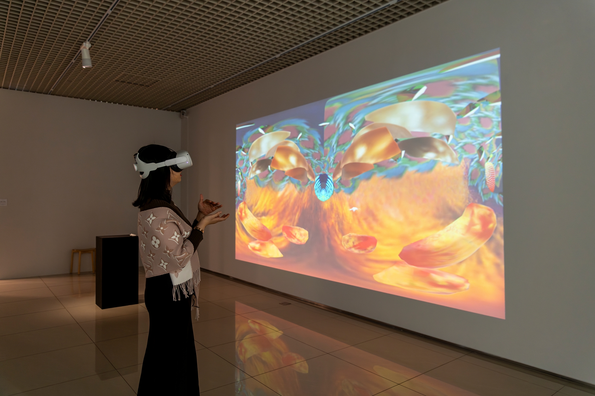 在虛擬實境中,身體被連結到虛擬空間內部。此時虛擬實境內的感知狀態,成為了身體的在場。這一方面懸置了位於現實的身體,使之成為空缺;另一方面透過虛擬實境所召喚的身體感,也動搖了人類身體具有獨立性且不可分割的想像。即身體不再是純粹物質性的,而是透過模擬後重新被部署在世界中的情境。在這樣的狀態之下,主體透過虛擬身體重構了自身的界線,使得主體溢出邊界朝向虛擬,虛擬亦朝向主體跨越。
