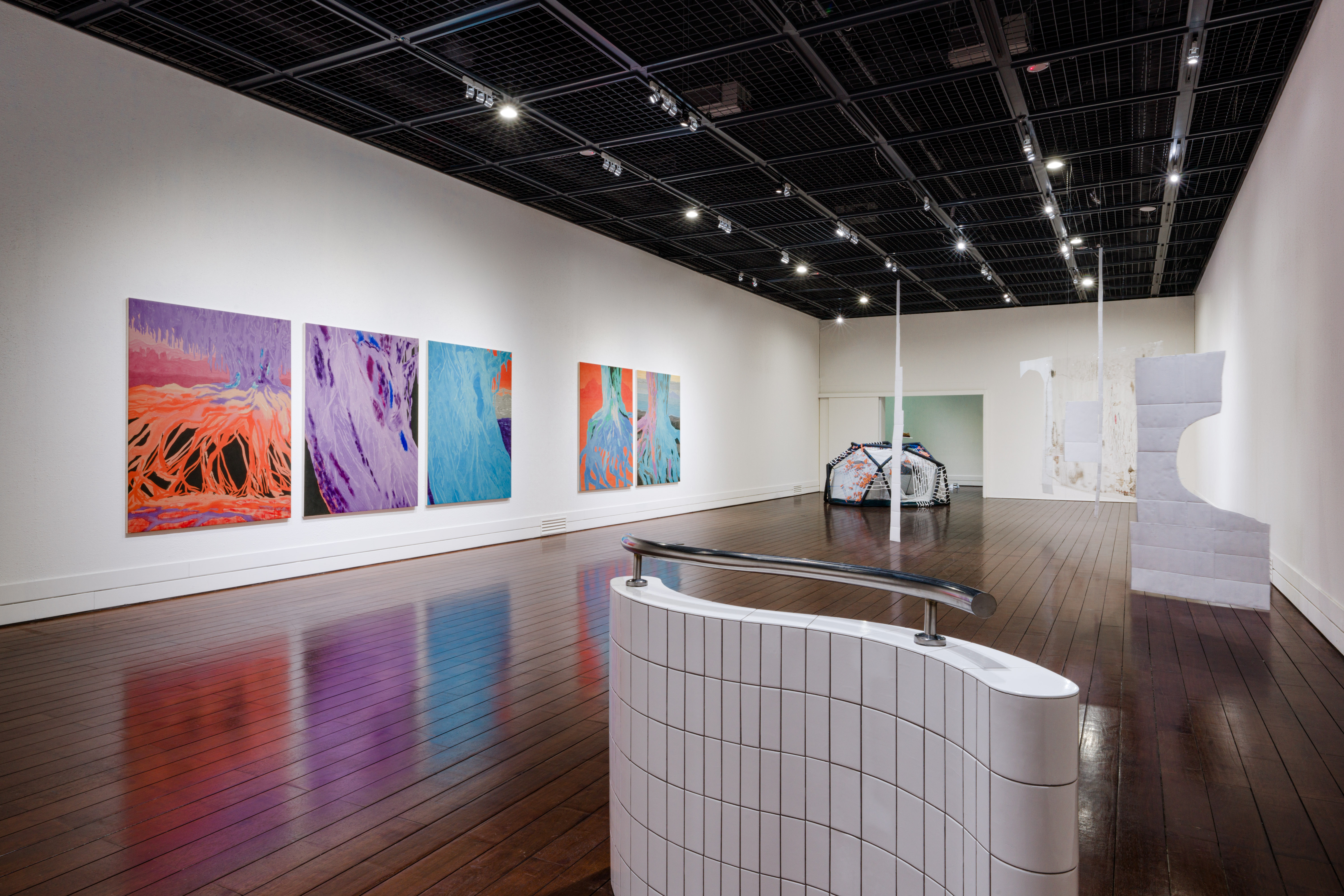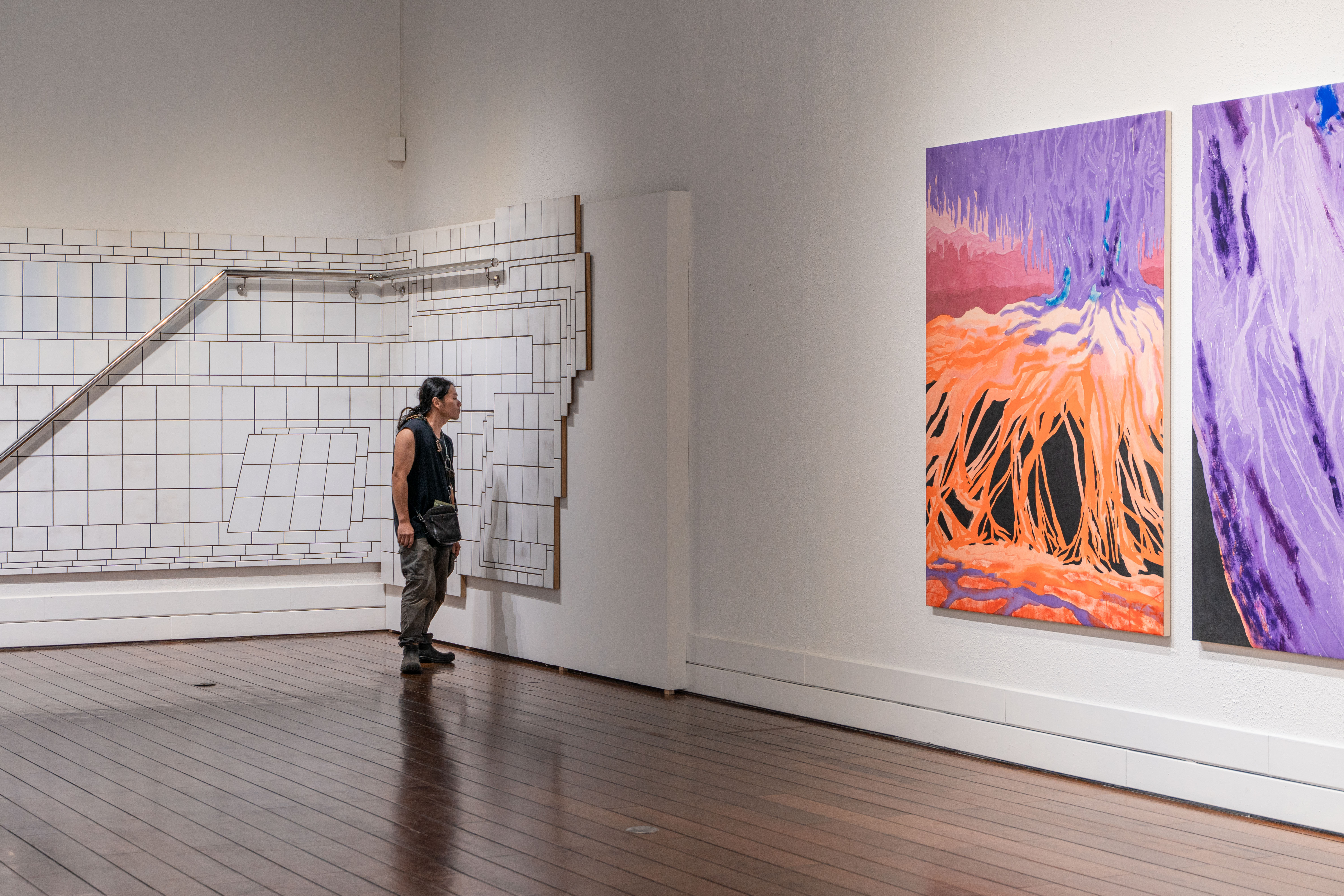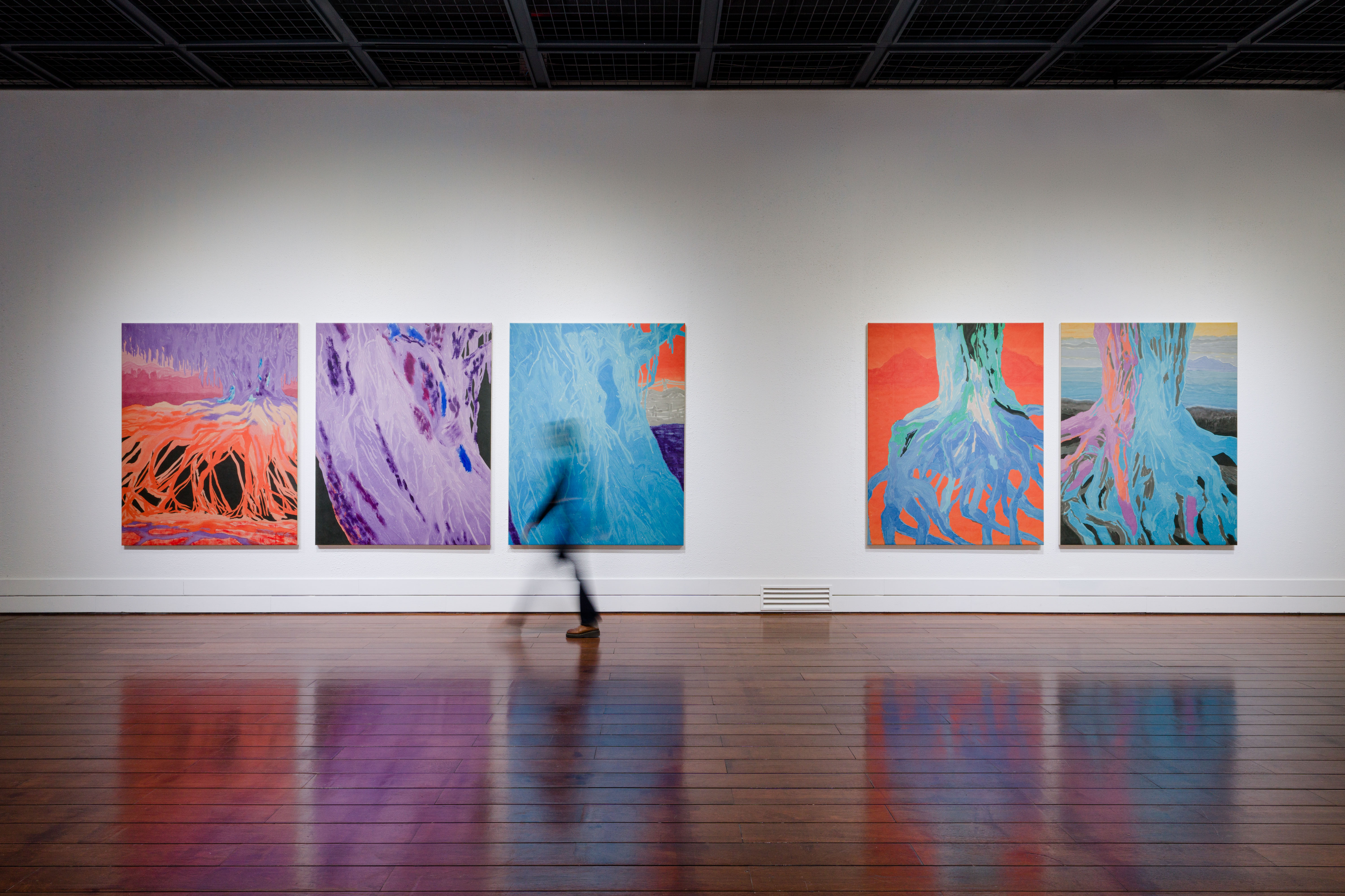 藝術家Matěj Macháček經由在臺灣東部短暫踏查的經驗,透過脈紋筆觸和明亮對比強烈的色調繪製了他對於潮濕島嶼的記憶。藝術家重新描繪了臺灣東部樹木纏繞的根和樹幹結構的基本形態,其動態連結到古歐洲的巨大神秘教堂的意象。展出的五件畫作在臺灣繪製後,於藝術家位於布拉格的工作室接續完成,潤色後裱貼於畫布上,最後運送到臺東美術館參與展覽,因此作品也拼貼上藝術家旅行的片刻和跨文化的時空背景,同時跨越了現實與記憶的邊界。