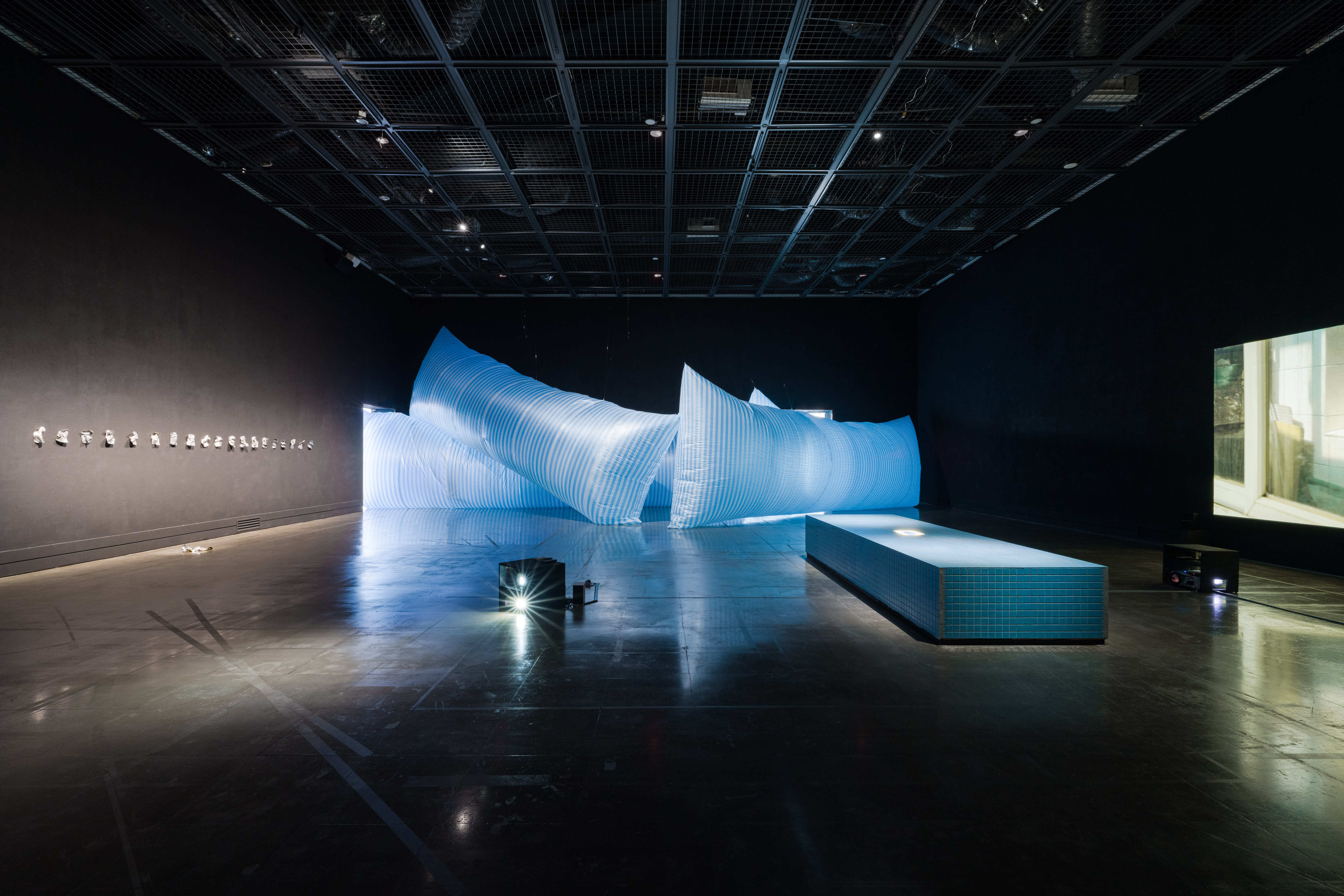 《夢之湖》由一組裝置和一件錄像共構而成,從藝術家自身的家屋史取材,以「家中曾有一座大眾泳池」為題,將看似虛渺的事轉化成實體的泳池雕塑,並以錄像中雙軌並進的字幕與影像敘事重塑「人—家屋—公眾泳池」之間的關係。